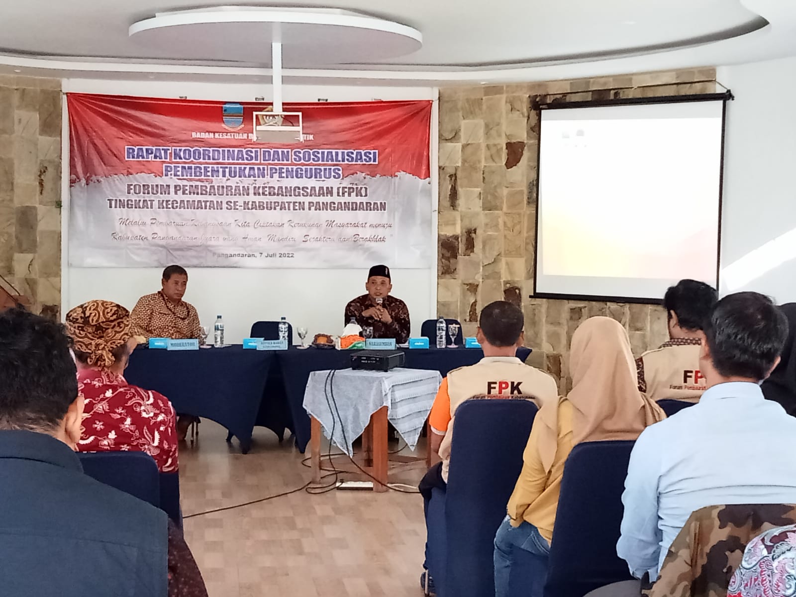 RAKOR DAN SOSIALISASI PEMBENTUKAN PENGURUS FORUM PEMBAURAN KEBANGSAAN (FPK) TINGKAT KECAMATAN SE-KABUPATEN PANGANDARAN TAHUN 2022