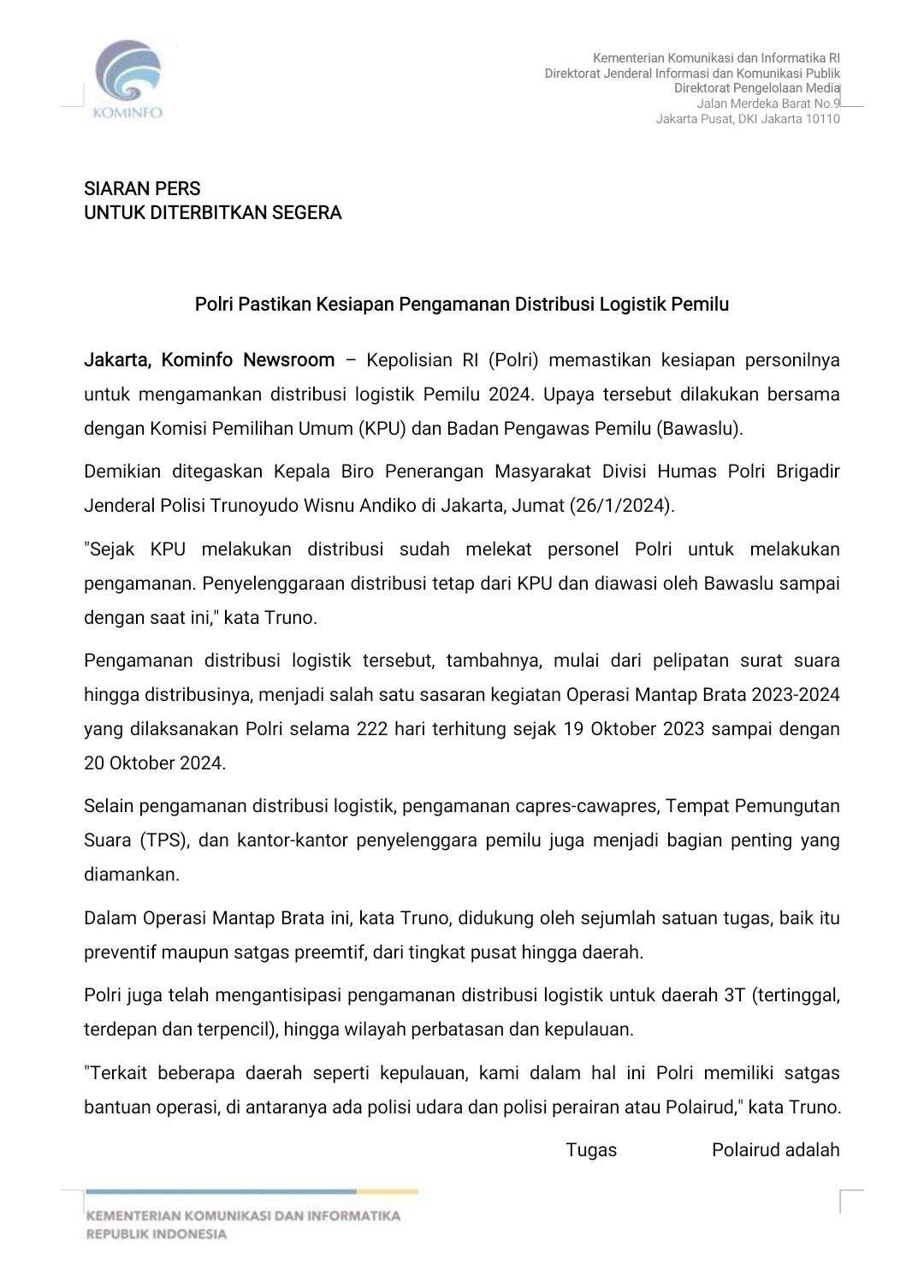 Siaran Pers Kementerian Komunikasi dan Informatika